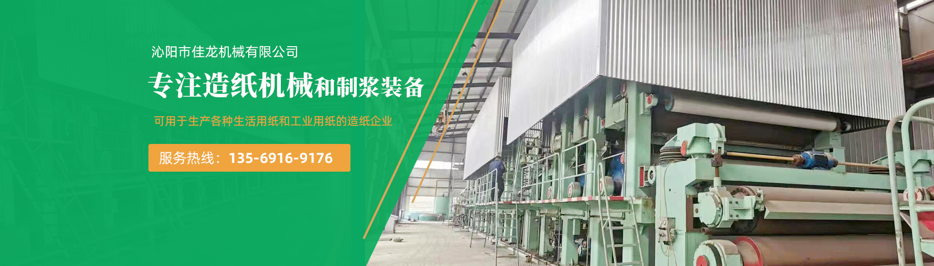 沁陽市佳龍機械有限公司(原沁陽市騰龍輕工機械廠)是生產各種型號造紙機械設備、制漿設備、完成設備、紙加工機械、造紙配件及耗材的企業。自建廠至今,經過不斷發展,現已是擁有完備的檢測手段,優良的加工團隊。致力于為用戶提供質量優良、工藝先進的各種造紙機械和制漿裝備。設備可用于生產各種生活用紙和工業用紙的造紙企業,以及生產草漿、木漿、竹漿和再生漿的制漿企業。提供1092-5200型圓網造紙機、長網/短長......